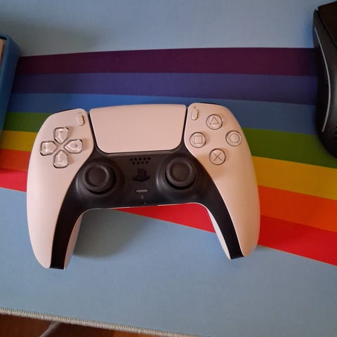 Sony DualSense trådløs kontroller i hvit farge. Designet for PlayStation-konsoller med standard knappoppsett og ergonomisk form for komfort under spilling. Den har stick drift, så om du kan fikse d så er det en fin kontroll.