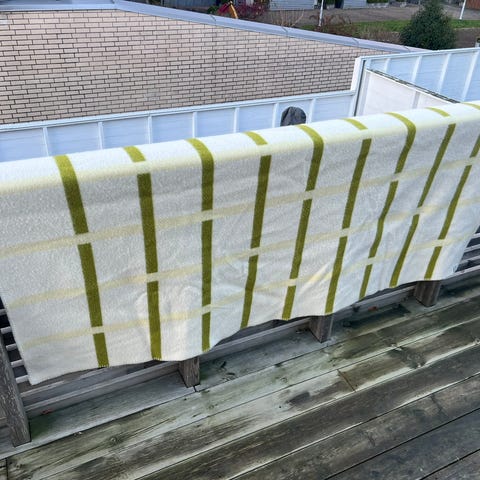 Designa av Anette Moi, og pleddet heter «Cool cats. Ingen anmerkninger.
