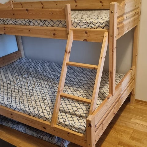Veldig god stand køyeseng. Brukte bare på gjestene rom. Madrasser følge med.