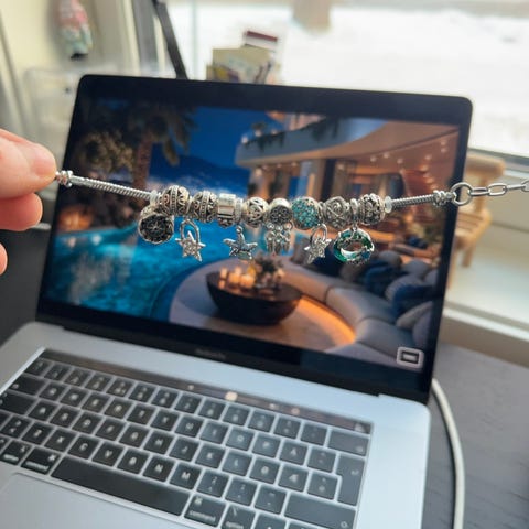 Pandora smykkeskrin i metall med dekorative krystaller