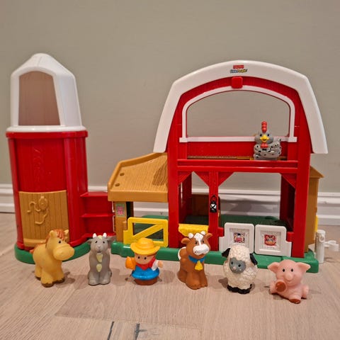 Fisher Price Little People bondegård med diverse figurer. Den lager lyd når man åpner porten.