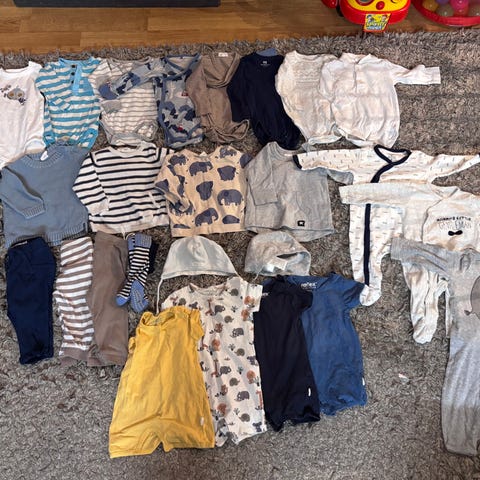 10 langermede bodyer (hvorav 2 har matchende bukser)