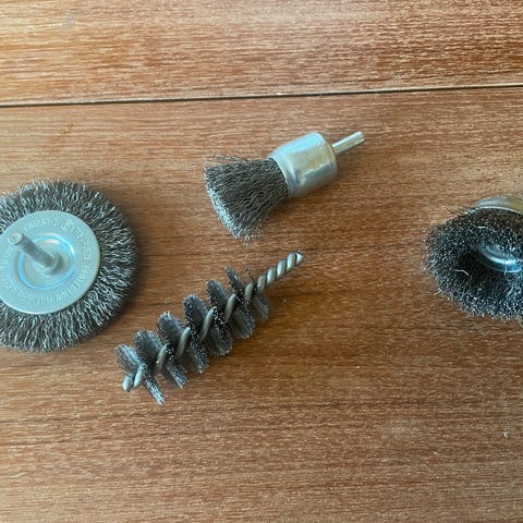 Børstene festes direkte til en drill, noe som gjør den om til et kraftig rengjøringsverktøy.