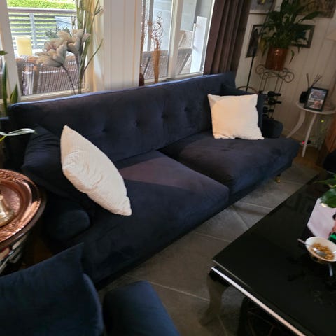 Sort Andrew sofagruppe i god stand selges grunnet overgang til ny sofa. Kjøpt ny av meg fra Trademax i 2021.