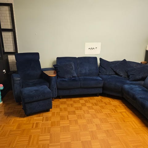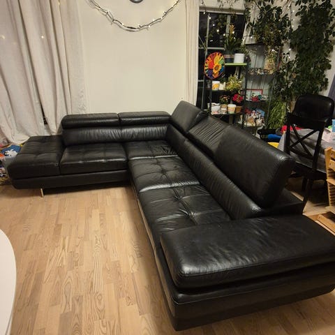 Selger en stilren og komfortabel sovesofa i svart semsket skinn. Sofaen fremstår som svært pen, med svært få riper og generelt lite bruksslitasje. Den ble profesjonelt renset i juni 2025, så den er både ren og klar til ny eier.