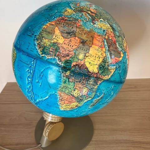 Globen har et kartbilde som reflekterer geopolitiske forhold fra før Berlinmurens fall i 1989.