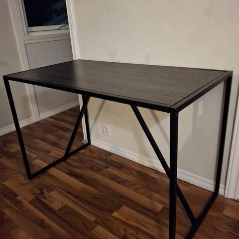 Veldig praktiske, smale arbeidsbord, kan settes sammen i ulike kombinasjoner. Høyden kan reguleres individuelt for hver fot. Veldig stødige, og stables lett bort. Små bruksmerker. Gis bort pga flytting., må hentes i Strandgaten 208 på Nordnes senest lørdag formiddag.