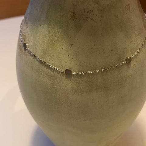 Lite anheng som er tredd på kjedet, ligger fint i halsgropen.