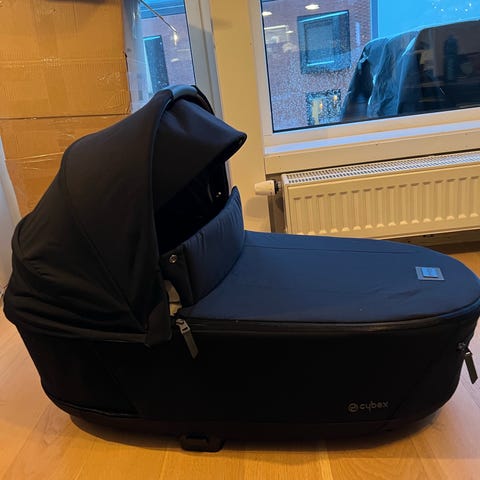 CYBEX priam barnevognsbag med blått trekk. Medfølger original myggnettingen og regntrekk. Regntrekket er noe misfarget, men kan vaskes. Alt kjøpt i 2019. Pent brukt, men glidelåsen på bagen er litt slitt. Funker når det brukes pent.