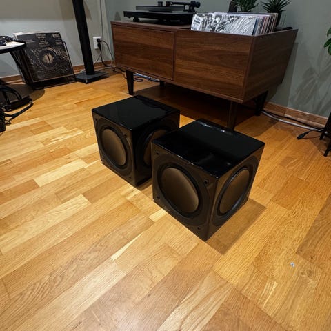Selger en liten kruttønne av en subwoofer, PSB HD8. Et aktivt element og 2 passive.
