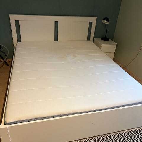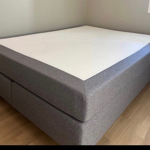 Bohus madrass med grått trekk og overmadrass 150×200 cm.