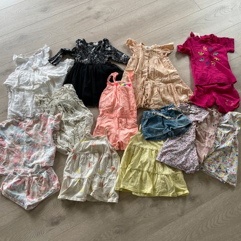 Klespakke med sommerklær str 80 og 86, mye nøytrale farger