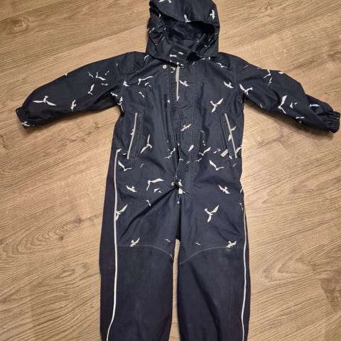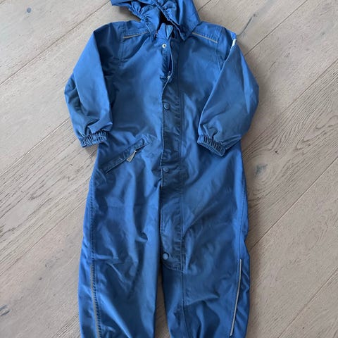 Vårdress/skalldress fra ReimaTec. Kjempefin rødfarge. Har blitt brukt av flere barn, se bilder for å se «slitasje» (men ser ingen hull). Kommer uten fotstrikker, men vi har ikke brukt det på denne dressen på sistemann, det funka helt fint uten. Hadde brukt denne videre hadde det ikke vært for at den nå er for liten. :)