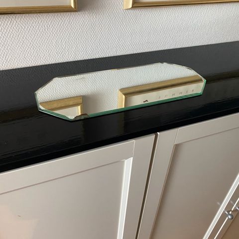 Brettbart speil. Har tidligere vært festet til en kommode.