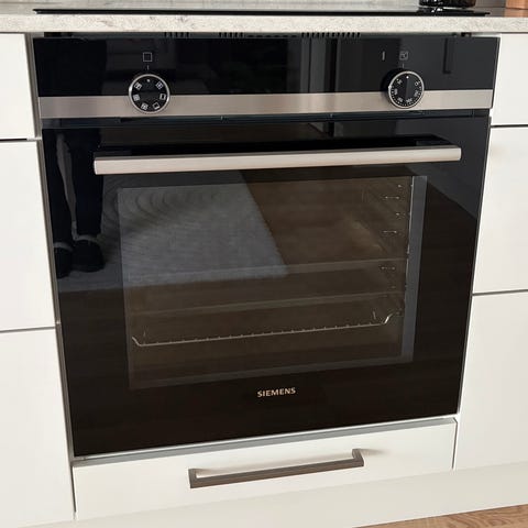 Ovnen er kun brukt fem ganger, selges da jeg personlig liker Bosch sin bedre. To brett, en langpanne og en rist følger med.