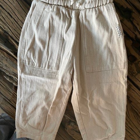 Favorittbuksa til minsten fra Minories! Denne dongeribuksa har elastikk i livet, er god å leke i og ser kul ut på. Masse bruk igjen, og passer like godt til alle kjønn :)