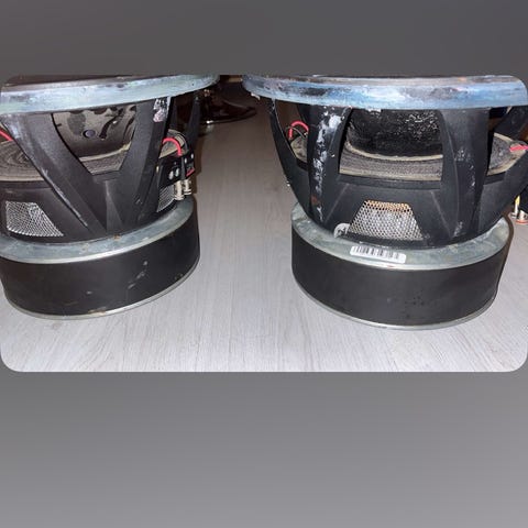 Selger en bilsubwoofer Crunch GTS Series i kasse sammen med forsterker.