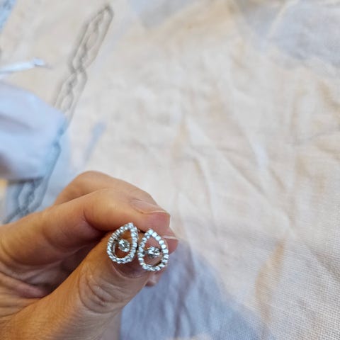 Lite brukt. Hvitt gull. Tre diamanter på hver ørering.