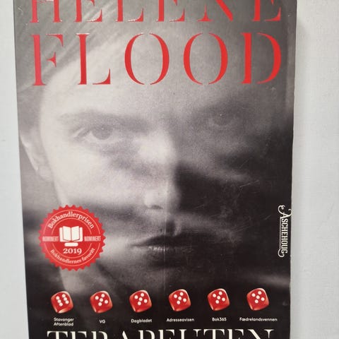 Pent brukt immbundet utgave av Helene Flood sin krimroman Terapeuten.