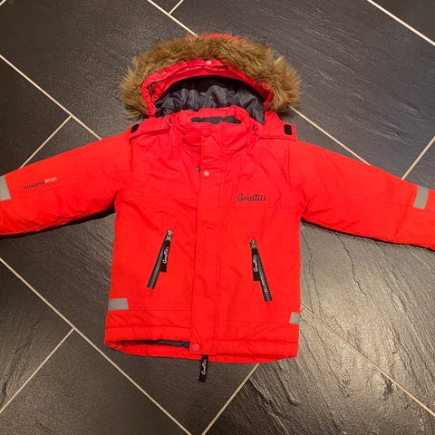 God og mellomtykk vinterjakke til barn fra Grafitti. Lite brukt, kan ikke finne noen synlige bruksmerker. Avtagbar hette, strikk i livet inne i jakke så den sitter godt. Str 3 år, god i størrelsen. #vinterjakke #barn #g