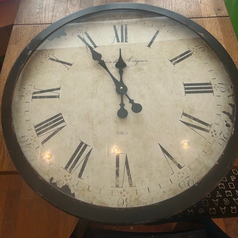 Flott hjerteformet veggklokke med ramme i krom selges.