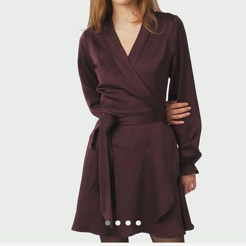 Flott bluse med paljetter i dyp lilla/sort farge. Blusen har god kvalitet så paljettene sitter godt og du etterlater deg ikke ett dryss av paljetter. Kun brukt to ganger. Selges fordi jeg fikk dilla og kjøpte litt for mange bluser/ kjoler med paljetter ! Jeg er 164 cm og blusen rekker akkurat til bukselinningen.