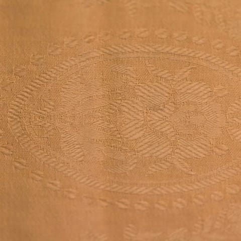 Løper: 1 stk brun applikert bord løper, polyester, 35×120cm, foret med silkestoff (Kremmerhuset).