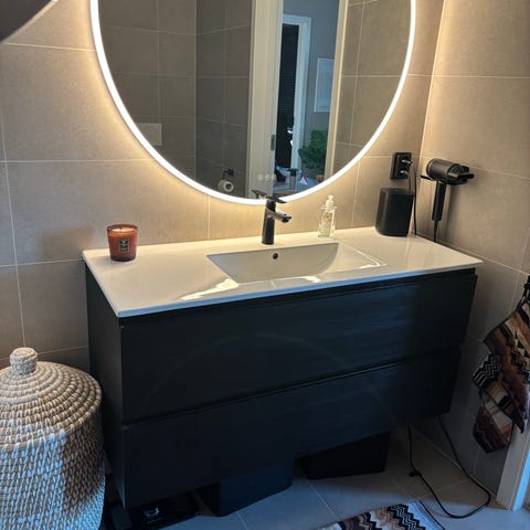 Baderomsmøbel 120 cm med servant, servantbatteri, pop - up og speil.