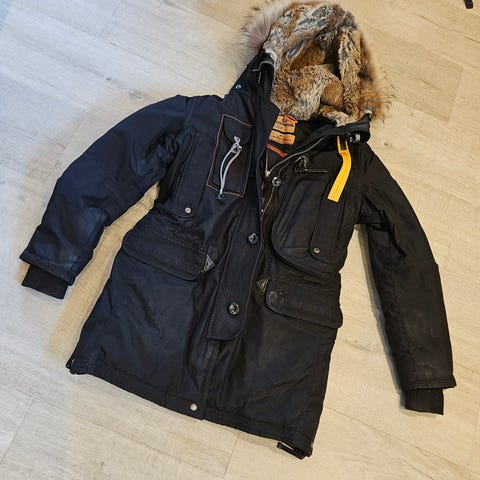 Selger min godt brukt Parajumper jakke i en mørk blåfarge. Trenger en rens, men fortsatt en fin og god jakke til kalde dager.
