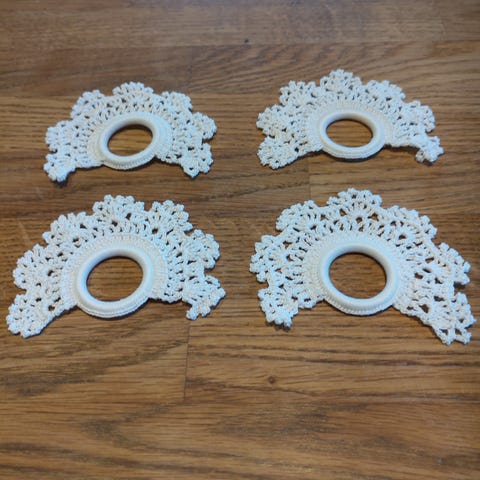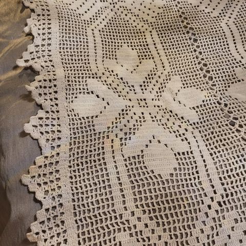 Enkelt, offwhite, hekla. Må hentast.
