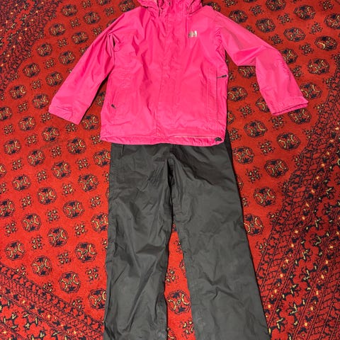Skalljakkeog skallbukse fra Helly Hansen. Buksen er i str.122 jakken i str. 128 men de er brukt samtidig som et sett, da jeg syntes buksen var litt stor i str. og kjøpte derfor 1 str. mindre i den.