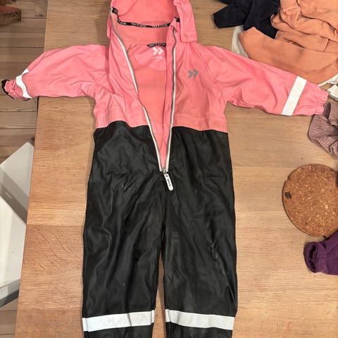Pent brukt foret regndress i størrelse 90 selges.