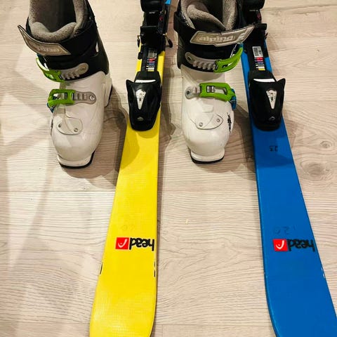 Dynastar Trouble 118 Junior alpinski. Skiene har bindinger montert og er laget for juniorbruk.