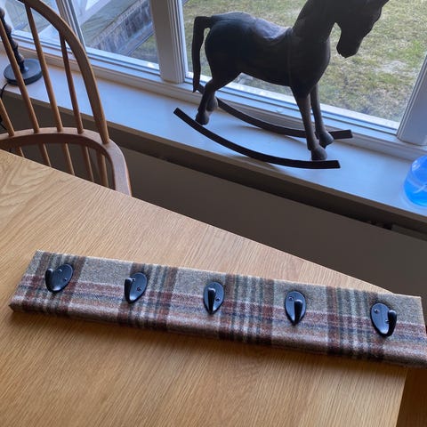 Helt nye knaggrekker med det ikoniske Mulberry tekstilet og fem sorte knagger.