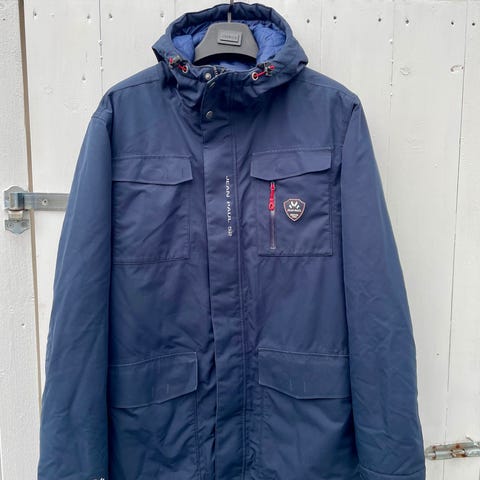 Jean Paul Jakke i størrelse XXL, svart farge og laget av polyester. Jakken er designet for menn og egner seg som yttertøy i ulike værforhold. Denne er brukt av dame så vil si begge kjønnsroller kan bruke denne fine jakken.