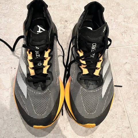 Adidas Adizero Evo SL løpesko i størrelse 40, med svart og rosa farge. Sykt kule! Passet dessverre ikke min fot. Prøvd to korte turer på mølle, så de er som ny.