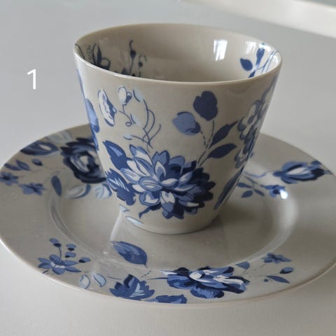 Muggen har stått til pynt, koppen er brukt men er hel og fin. Selges samlet