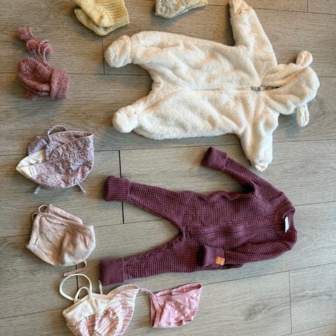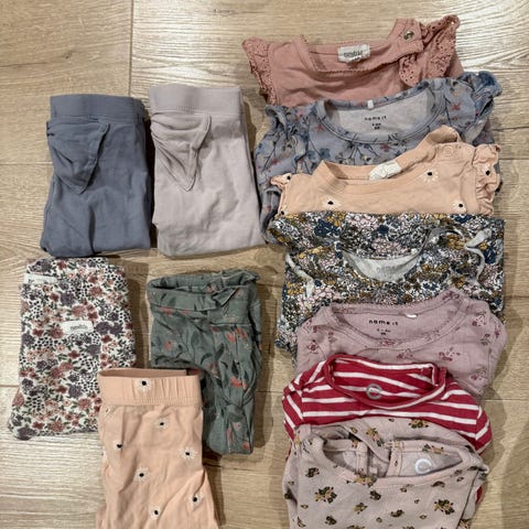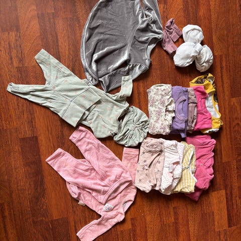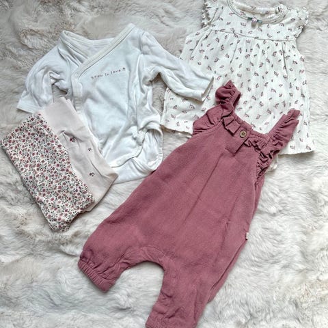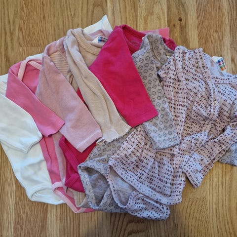 Klespakke til jente i størrelse 50 og 56, mest 56.