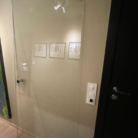 Dusjvegg i glass med frostet mønster