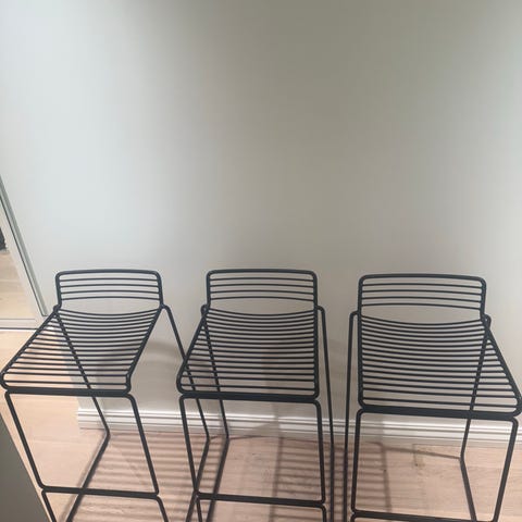 2 Pen brukte Hay hee barstoler i svart selges samlet.