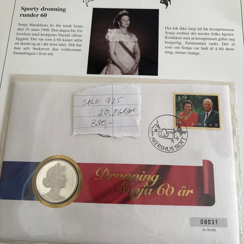 Selger 9 stk Kongelige myntbrev 500 kr+ frakt