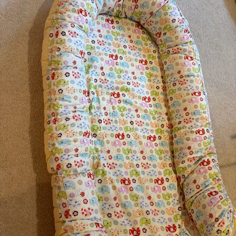 Babynest med vaskbart trekk. Lett å flytte på. Det er brukt mye i sofa og seng når baby skal sove på dagtid.