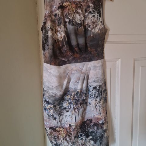 Ilse Jacobsen kjole i størrelse 40. Kjolen har et flerfarget mønster med store blomster og er laget av polyester. Brystområdet er enfarget og elastisk. Designet er egnet for pent og/eller sommerbruk.