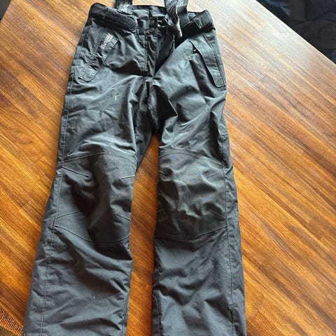 Høy rygg. Avtagbare, justerbare seler. Beltehemper. Borrelåsjustering og strikk i livet. Formsydd kneparti. Innvendig, fast gamasje med innvendig friksjonsstrikk. Forsterkning på knær, sete og nederst på buksebena.