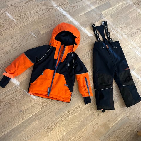 Lettdun jakke str 98 og vinterbykse Helly Hansen str 98 selges