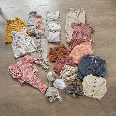 Masse søte jenteklær i størrelse 68. Mix fra Hust&Claire, Newbie, Wheat, H&M, Lindex, Reflex, Name It.
