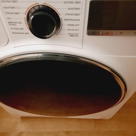 Selger en pent brukt siemens tørketrommel med selvrensende varmepumpe teknologi.