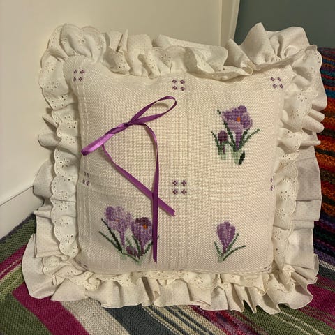 Håndbrodert pute i ull.