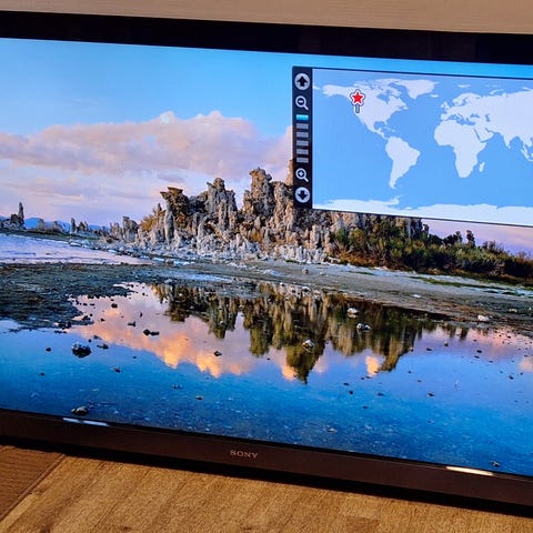 Modellen har 4 HDMI-tilkoblinger og innebygd Wi-Fi for streaming og tilkobling til internett.