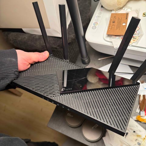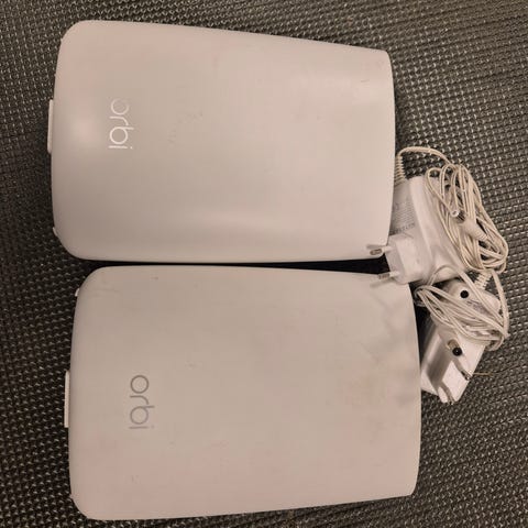 Arlo Router med trådløs nettverkstype. Enheten leveres med nødvendig tilbehør for tilkobling og bruk.